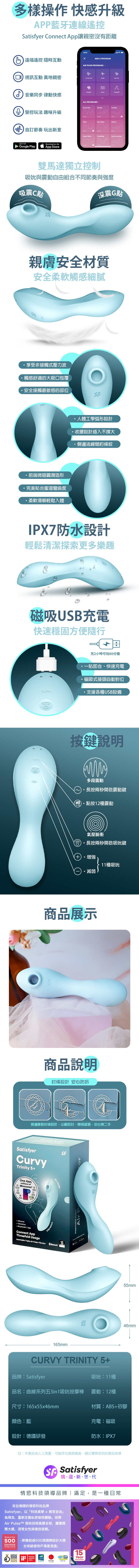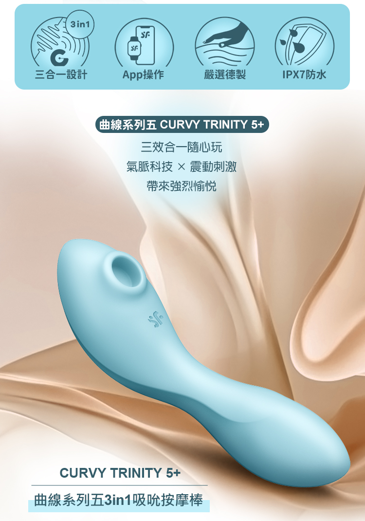 商品名稱:Satisfyer|Curvy Trinity 5+|曲線吸吮按摩棒 藍