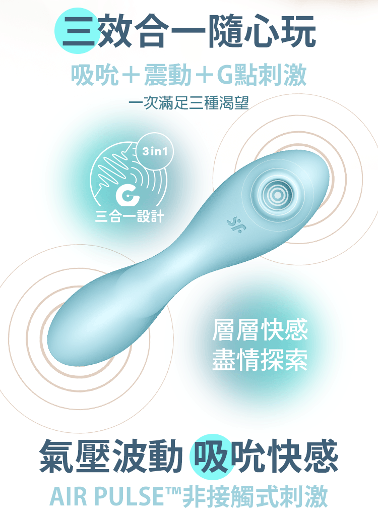 集結 吸吮 + 震動 + G點刺激,一機多玩,解鎖全新感受。